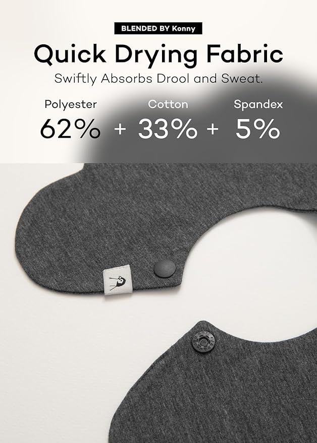 • Dribble pad and bib in one: This multi-purpose bib is made of the Konny Baby Carrier fabric that has a soft, yet firm feel with quick absorption / drying functions.