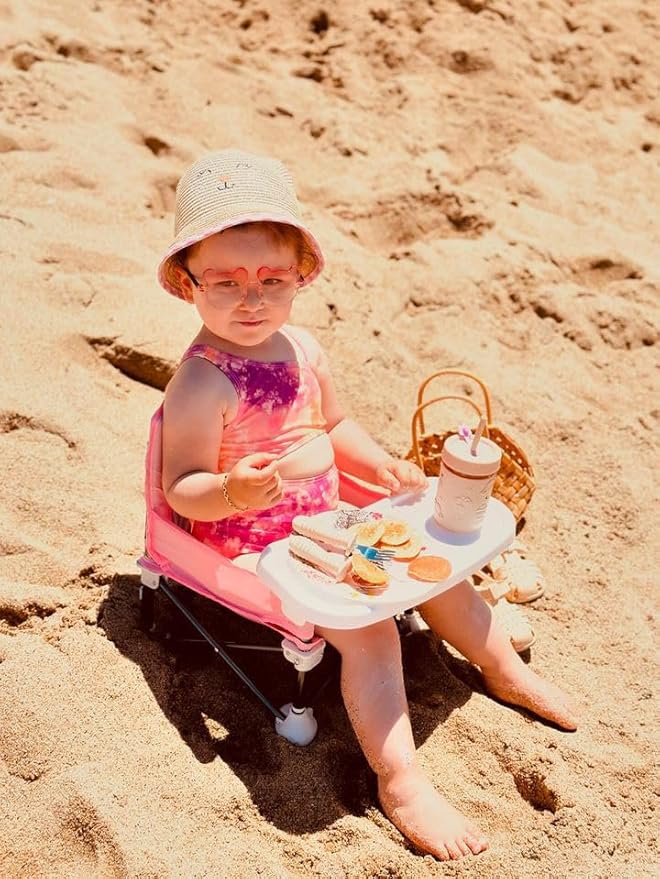 PandaEar Portable Baby Seat Travel| Compact Fold with Straps for Indoor/Outdoor Use| Great for Camping, Beach, Lawn |Toddlers, Kids, Boys, Girls (Pink)
