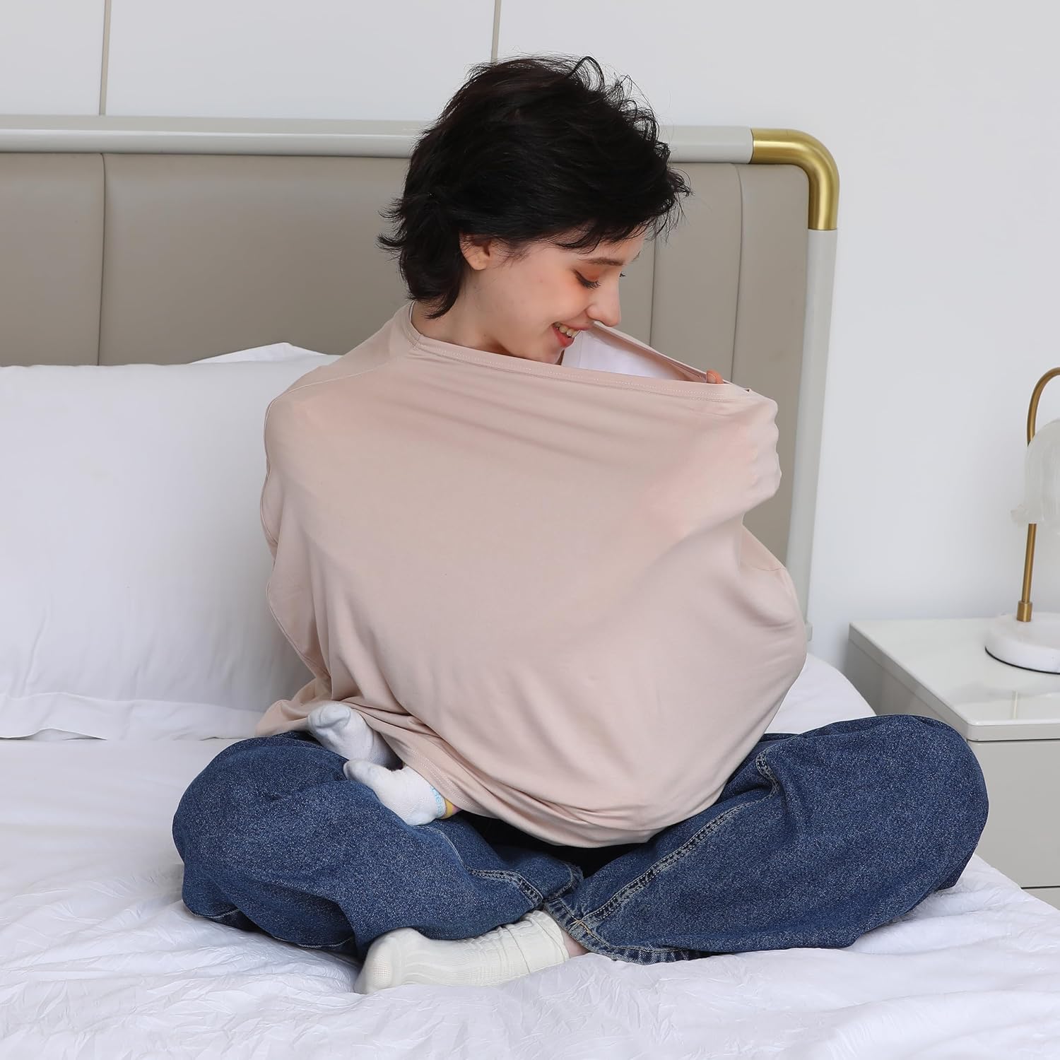 - QUICK INSTALLATION & ACCESS: Our multi-use nursing cover made of stretchy fabric and designed to tubular shape, allows quick installation and access with no need for button.