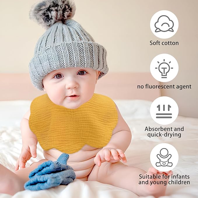 - 1.Elevate Everyday Mess into Stylish Comfort with Our Baby Bibs: Immerse your baby in the luxury of our four-layered 100% Muslin cotton bibs, where impeccable craftsmanship meets exceptional absorbency. Say goodbye to mealtime mess and hello to a world of clean, cozy, and vibrant mealtimes.