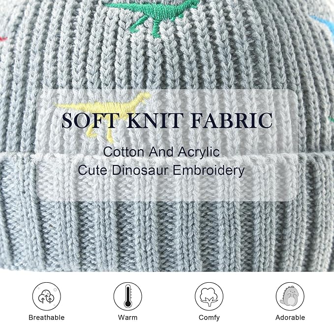 • Cute Dinosaur Hat: We chose 4 colors as the base of the newborn beanies for boys: black, white, grey, navy, with some bright dinosaur embroidery patterns in red, yellow, blue and green, which makes the whole toddler girl beanie looks more cute and adds a touch of childish fun, great for boys and girls who love dinosaurs.