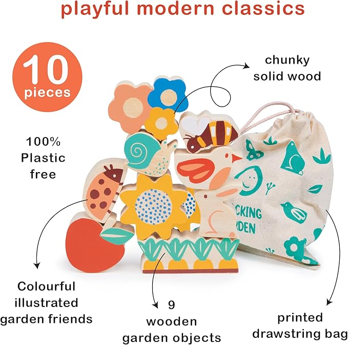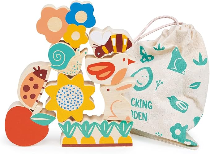 - NATURE INSPIRED STACKER - Our Happy Stacking Garden is a nature inspired take on the classic Montessori stacking toy. With its chunky durable wooden pieces, it's eco-friendly fun that grows with your child. Aim of the game? To stack all the shapes without them taking a tumble or the whole lot toppling over! A lovely little drawstring bag keeps all the garden themed pieces safe and tidy at the end of play.