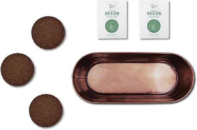 - All-in-One Indoor Herb Garden Kit: Everything you need to grow fresh herbs at home. This complete kit includes 2 Non-GMO seed packets: Rosemary and Thyme, nutrient-rich growing medium, a stylish copper-tone metal planter, and easy-to-follow instructions. Perfect for anyone looking to start an indoor herb garden, whether you’re a beginner or simply love growing plants and enjoying fresh, homegrown herbs year-round.