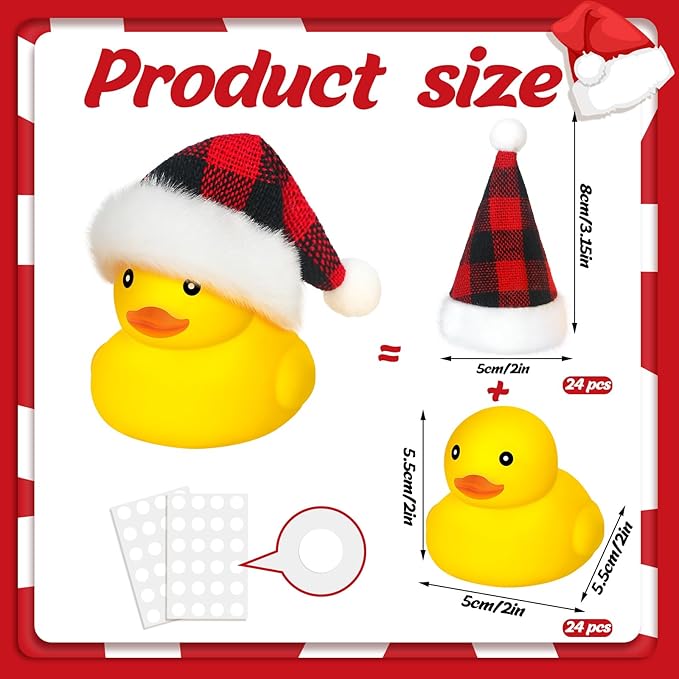 - Package Information: you will get 48 pieces of decorative Christmas Santa hat ducks include 24 pieces of yellow ducks and 24 pieces of berry plaid Christmas Santa hats, which are enough for your daily use or to share with others