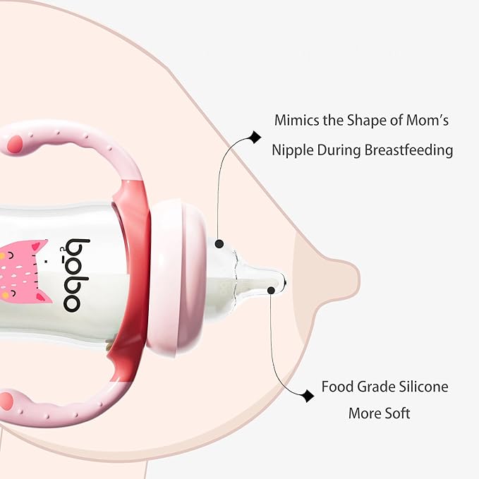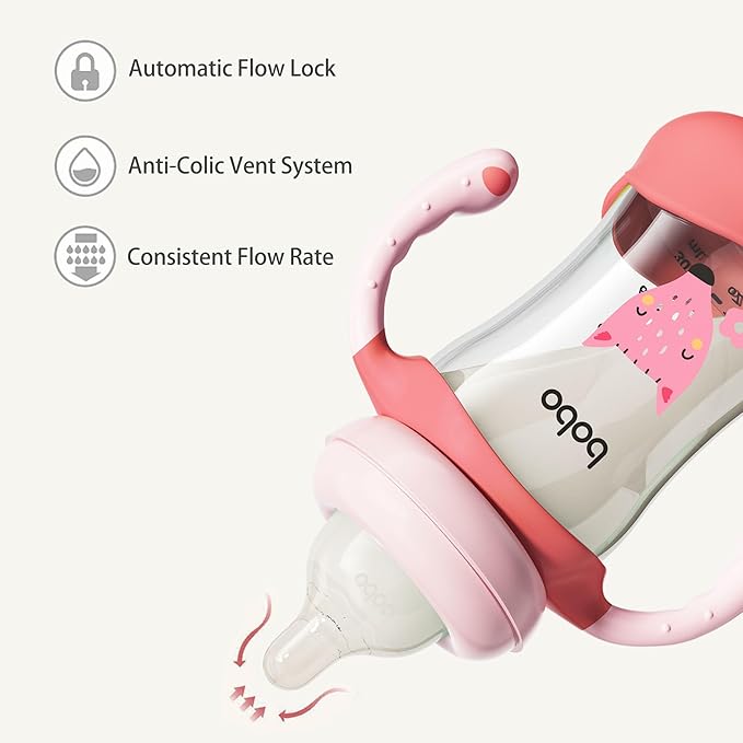 - Our baby bottles also come with a unique gravity ball design that allows your baby to drink at will. The bottom is equipped with a thick rubber cover to make the bottle more stable. Removable handle makes it easier for your baby to hold.