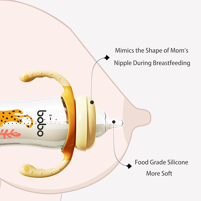 - 160ML/5.4OZ for 9 months +, 260ML/8.8OZ for 12 months +. BPA-free. Meet the needs of all stages of the baby. Glass natural baby bottles with natural response nipples can control the speed of milk according to the baby suction, just like the natural sensation of breastfeeding.