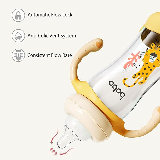 - Our baby bottles also come with a unique gravity ball design that allows your baby to drink at will. The bottom is equipped with a thick rubber cover to make the bottle more stable. Removable handle makes it easier for your baby to hold.