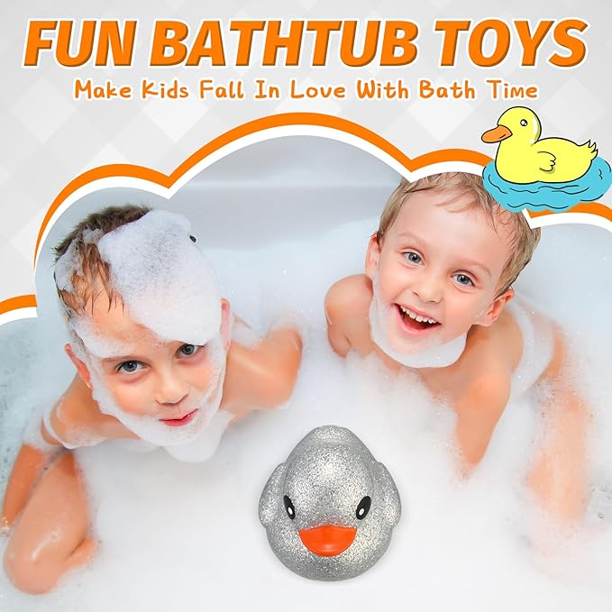 - Attractive Appearance and Large Size: the package contains 1 piece of rubber duck in silver glitter design, which looks delicate and stylish; And it is approx. 6.89 x 5.1 x 5.1 inches/ 17.5 x 13 x 13 cm, giant size to catch most people's eyes