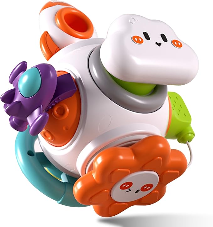 - 【6-in-1 Montessori Toy】This baby toys includes 6 activity panels to bring different experiences to children. There are an extendable rocket, a simulated plug, a squeeze button, a pushable spaceship, a rotating steering wheel and a spinning top in the shape of the sun. These are ideal montessori toys that they will keep kids busy for hours and stimulate their imagination, attention and learning ability. Surprise baby toys for 0-6 6-12 months.