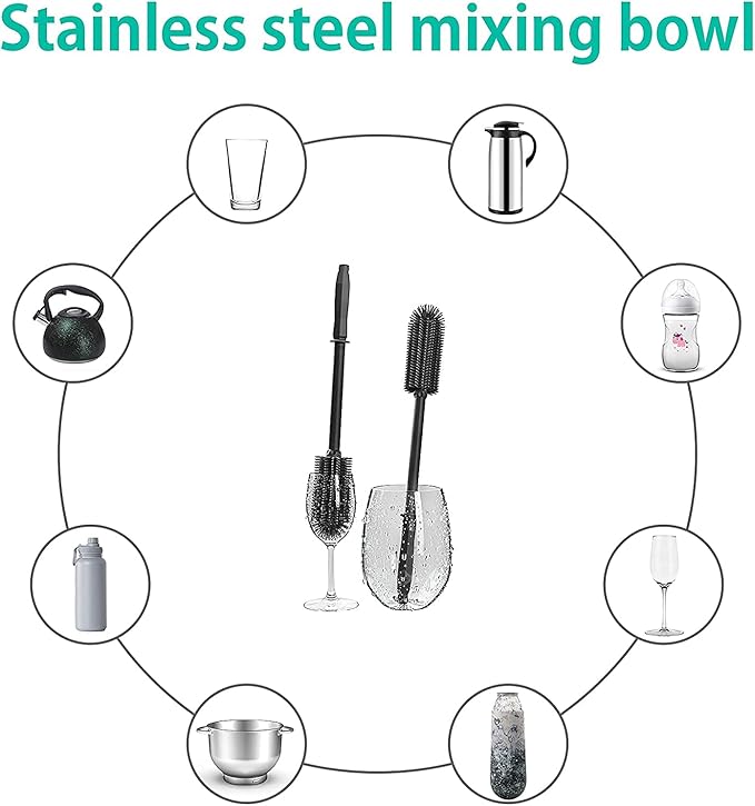 - 【Gentle and Scratch-Free】The gentle nature of our silicone bottle brushes ensures a scratch-free cleaning experience. Effortlessly remove grime and residues without leaving any marks or scratches on the surfaces