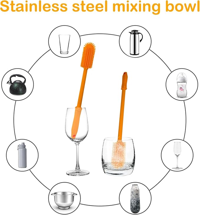- 【Gentle and Scratch-Free】The gentle nature of our silicone bottle brushes ensures a scratch-free cleaning experience. Effortlessly remove grime and residues without leaving any marks or scratches on the surfaces
