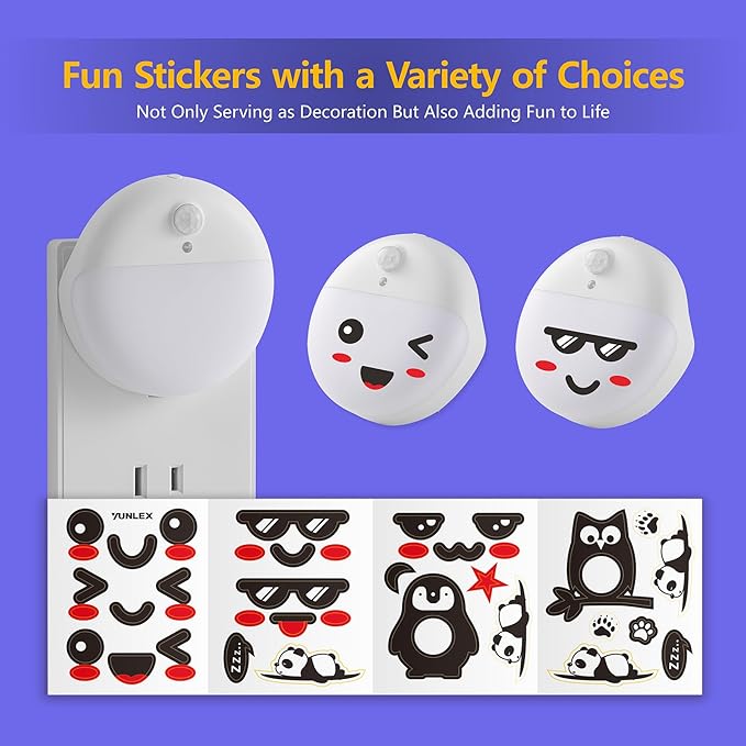 - Decorative and Compact: Stickers are included to make this night light unique wall decor when it's not working during the day. The compact and small design allows it to take up only a single receptacle, leaving the second outlet free for use when plugged into a standard outlet.