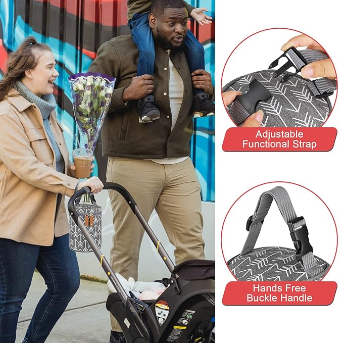 • DETACHABLE BUCKLE DESIGN: The detachable buckle is designed for hanging on a baby stroller or car seat. Fits for any stroller or pet Stroller. You can also attach it to diaper bag, back seat of car, or take it as a small tote bag.