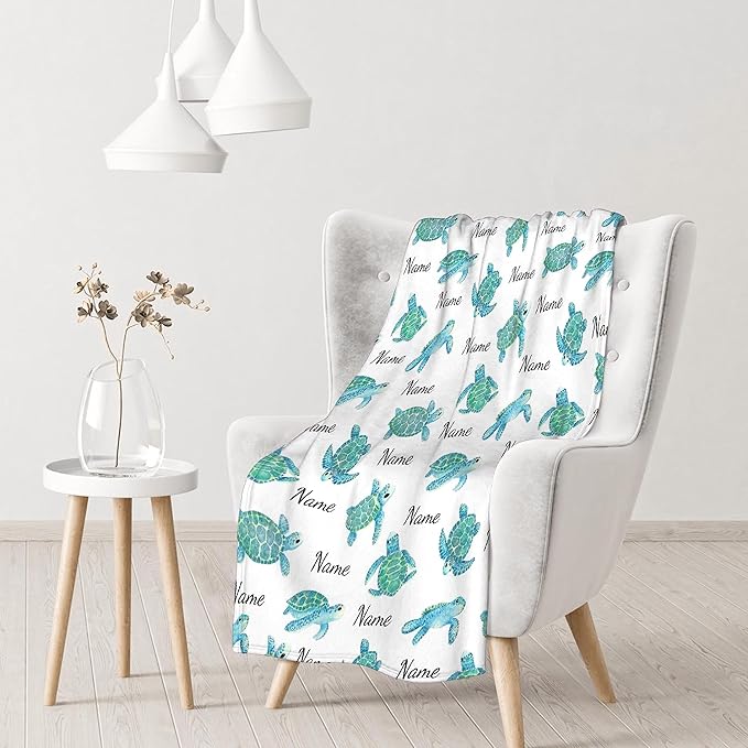 Personalized Baby Blanket for Girls Boys Turtle Custom Baby Blanket with Name Swaddle Blanket for Toddlers Infants Kids Shower Newborns Nursery Stroller Crib Decor Throw Birthday Gift