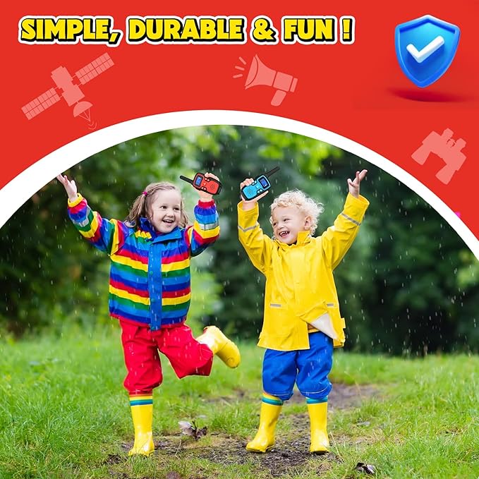 - 【Bold Gift for Boys and Best Buddies Ages 5–12】: In eye-catching red and blue, this 2-pack walkie talkie is great for brothers, neighbors, or best friends who enjoy outdoor missions, games, or camping.