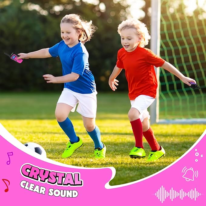 - 【Perfect Gift for Girls Aged 4–12】: Designed with adorable pink & purple colors, these 2-pack rechargeable walkie talkies are the ideal gift for 4–12 year old girls on birthdays, holidays, or Xmas.