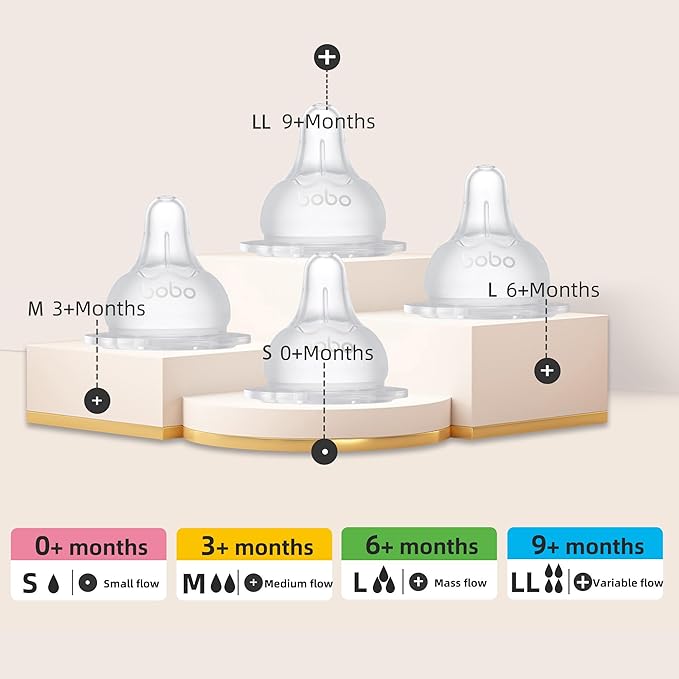 - Staged Flow: S is suitable for 0 months and above, M is suitable for 3 months and above, L is suitable for 6 months and LL is suitable for 9 months and above. Meet the needs of your baby at all stages.
