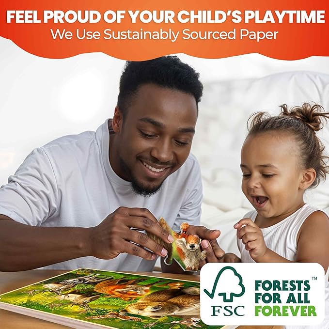 - 24 PIECE PUZZLES WITH ANIMALS: These childrens puzzles are made of wood and contain large pieces with unique shapes; With a captivating animal theme featuring a wide variety of creatures, these easy puzzles offer hours of fun for kids