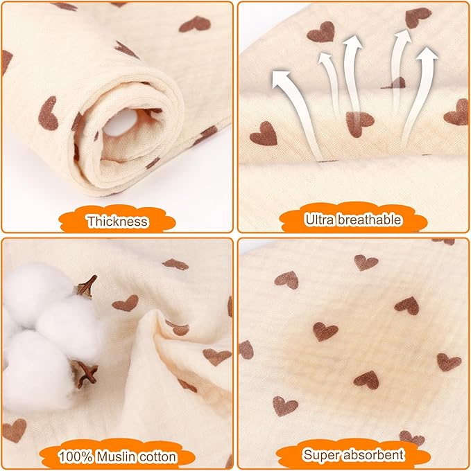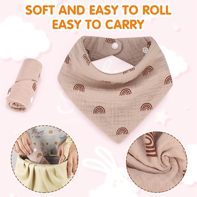 - Super Soft : Our muslin bibs made of 100% Cotton, They are very breathable and soft, ensuring comfort for baby's delicate skin.