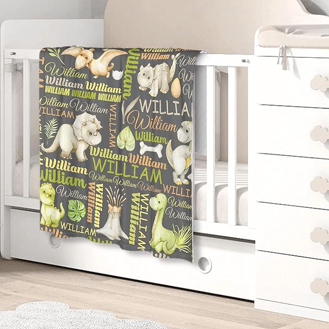 Personalized Baby Blanket for Girls Boys Dinosaur Custom Baby Blanket with Name Swaddle Blanket for Toddlers Infants Kids Shower Newborns Nursery Stroller Crib Decor Throw Birthday Gift