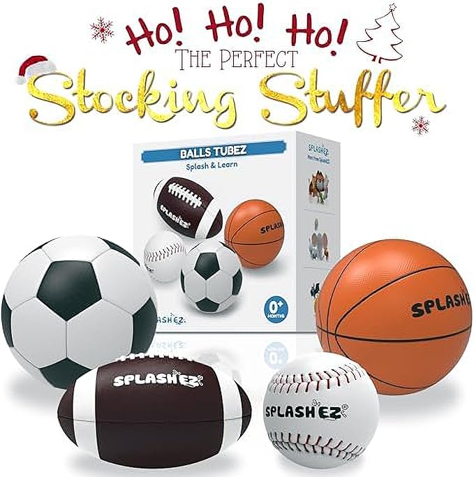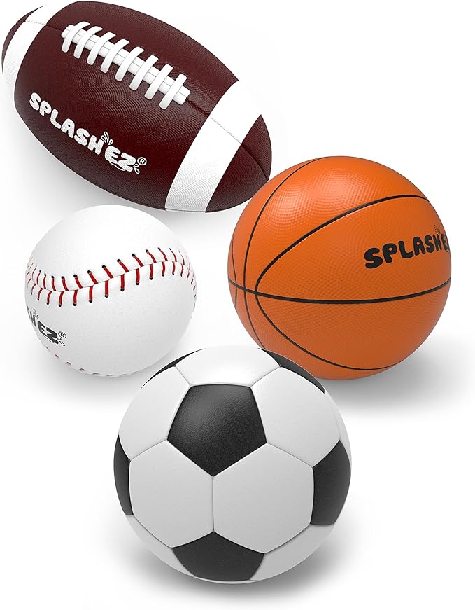 SplashEZ Baby Sports Bath Toys | Mold Free Bath Toys for Kids & Toddlers with No Hole for Water | Balls Set Ideal Size for Little Hands | Safe, Durable for Baby Tub Pool Fun for Boys Girls Ages 0 & Up