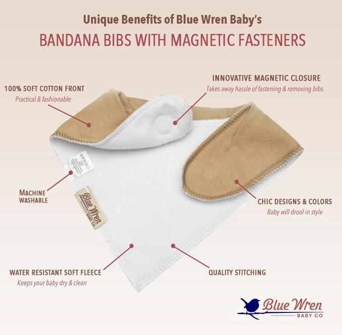 - Elevate your baby's style and simplify your routine with Blue Wren Baby's 5-Pack of Magnetic Closure Bandana Drool Bibs.