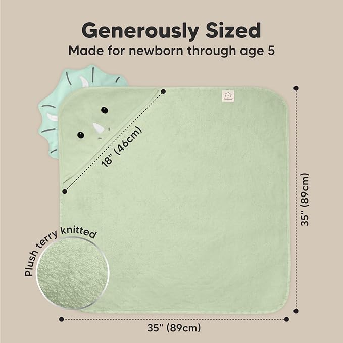 KeaBabies Hooded Baby Towel for Newborn - Viscose Derived from Bamboo Large Baby Bath Towels with Hood for Boys, Girls, Toddler, Extra Absorbent & Soft Newborn Bath Essentials (Triceratops, Regular)