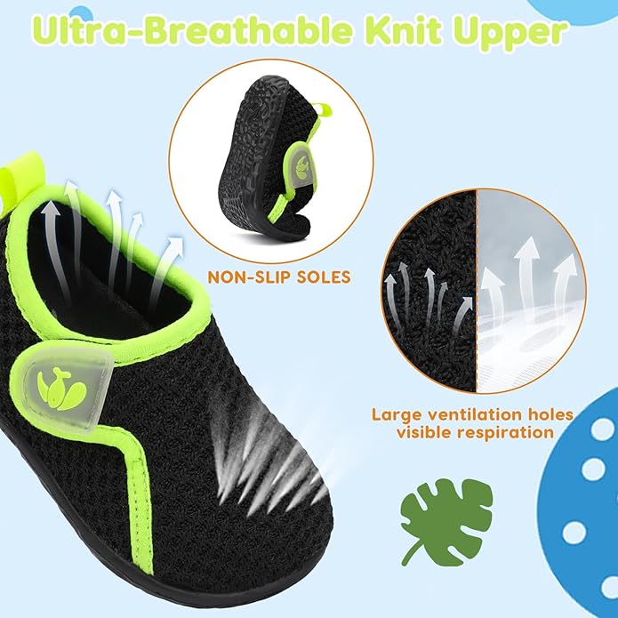 • Upper:Knitted Mesh Upper offers comfort and air permeability,has excellent breathability,moisture wicking function,and keep baby's feet dry and odorless.Super Soft,Breathable and Comfortable fit all the year