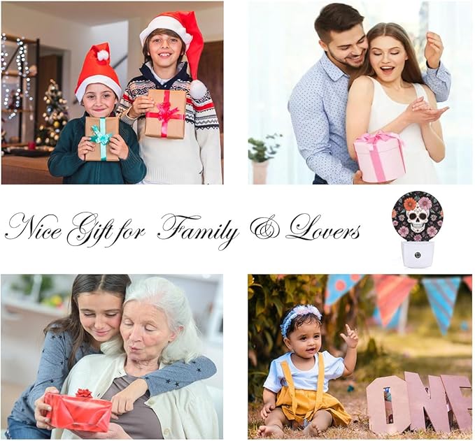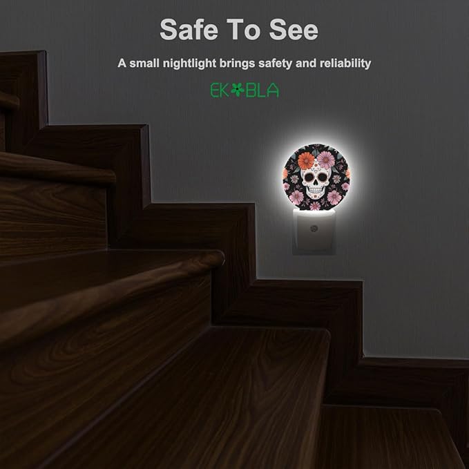 EKOBLA Floral Skull Night Lights Plug into Wall Skeleton with Flowers LED Dusk to Dawn Plug-in Nightlights Auto Sensor for Men Women Boys Girls Home Indoor Bathroom Hallway Kitchen