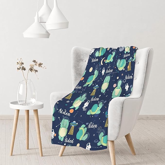 Personalized Custom Baby Blanket for Girls & Boys - Astronaut & Turtle Themed Swaddle Blanket for Toddlers, Infants & Newborns - Nursery, Stroller & Crib Decor - Throw & Birthday Gift