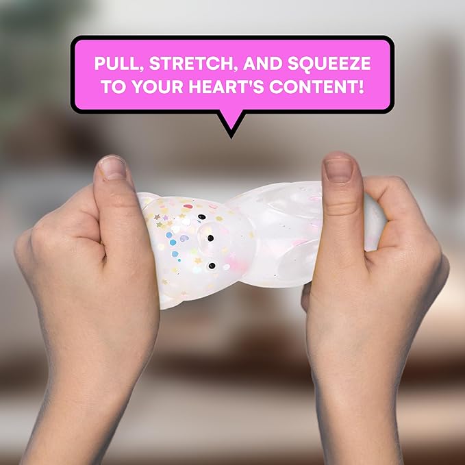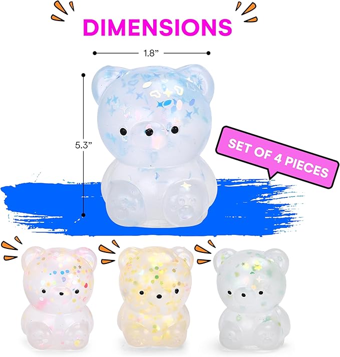 - MULTI-SENSORY STIMULATION - Feel the magic as you explore the glitter sequins inside each squishy bear. This multi-sensory experience captivates imagination also aids in sensory development
