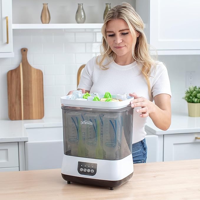 - Contains (1) Dr. Brown’s Natural Flow MilkSPA Breastmilk and Bottle Warmer with Even and Consistent Warming and (1) Dr. Brown's Deluxe Electric Baby Bottle and Pacifier Sterilizer