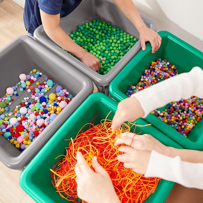 ECR4Kids 4-Station Sand and Water Adjustable Play Table, Sensory Bins, Grey/Emerald