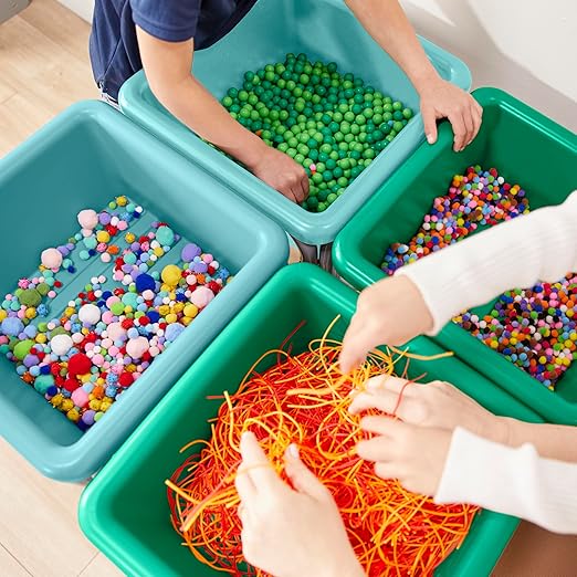ECR4Kids 4-Station Sand and Water Adjustable Play Table, Sensory Bins, Seafoam/Emerald