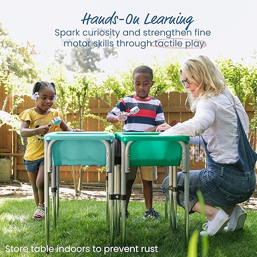 - Indoors and Outdoors: Play tables can be used in the backyard, outdoor play area, classroom, playroom; cover basins with secure lids to keep contents dry; bring tables inside to prevent rust