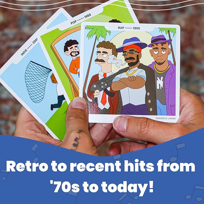 - Easy to Play: A simple card game that takes 1 second to learn and a 15 minutes to play. In this song game, score 1 point for correctly guessing the song and 2 points for the artist!