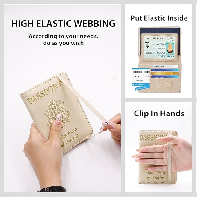 Melsbrinna Rfid Passport Holder for Travel women/Men, Cute Passport Wallet Rfid Blocking Card Slots, Rfid Passport Cover/CaseTravel Wallet, Passport Book Holder (1, Beige)