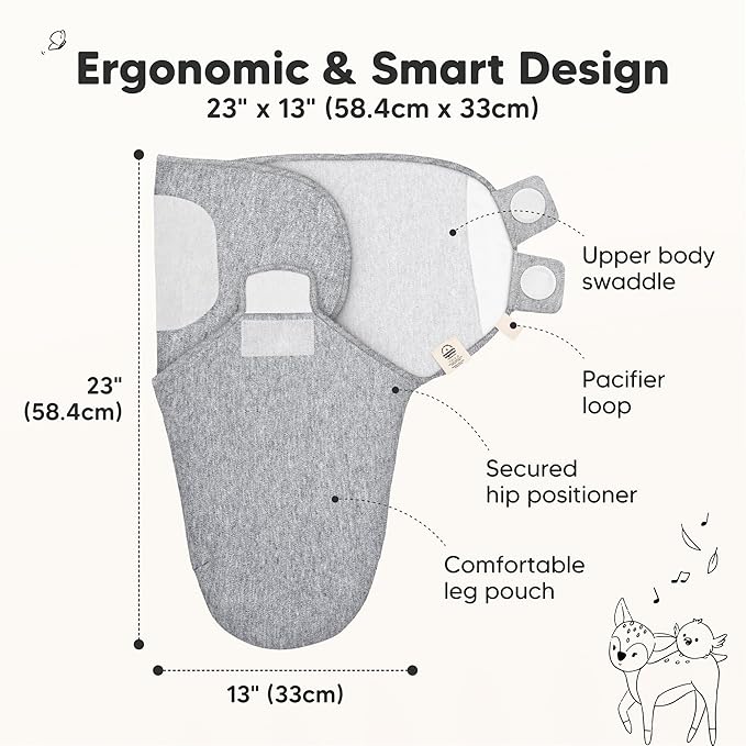 - Ergonomic for Newborn Growth - Certified as a hip-healthy product by the International Hip Dysplasia Institute (IHDI), the KeaBabies Soothe Baby Swaddle Sack provides ergonomic hip support for an infant's first 6 months of growth.