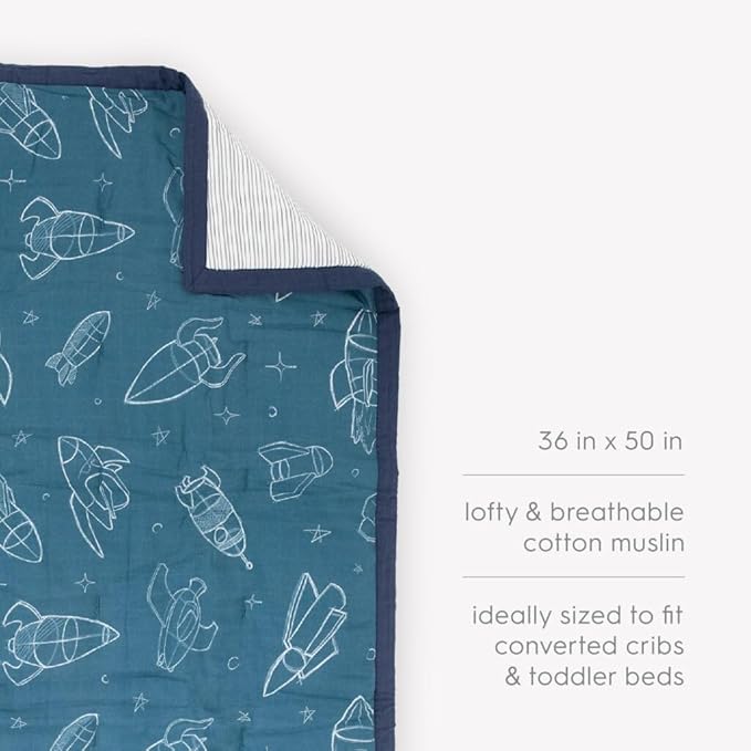 Little Unicorn Lofty Comforter Blanket | Super Soft & Breathable Muslin Fabric| Great for Play & Bedtime Blanket (Blast Off)
