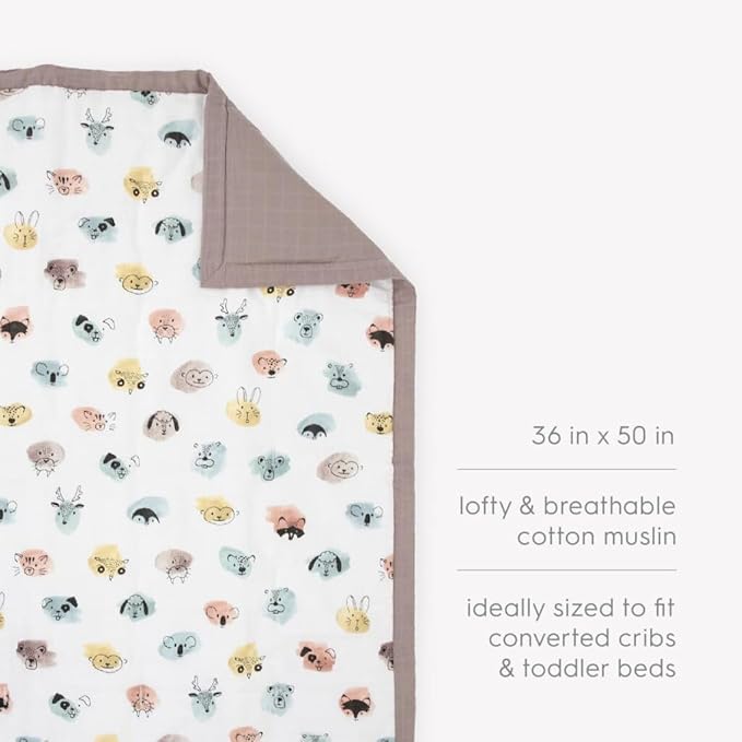 Little Unicorn Lofty Comforter Blanket | Super Soft & Breathable Muslin Fabric| Great for Play & Bedtime Blanket (Watercolor Critters)