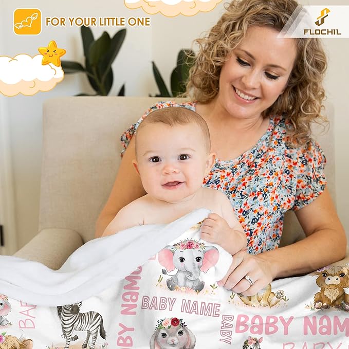 - PERSONALIZED BABY BLANKETS: Click "CUSTOMIZE NOW" and enter Baby's name or text on this cute personalized baby blankets (you can also add the optional matching bib and baby onesie). A personalized baby blanket with name for your baby will be the best gift for your little angel and can be used as a permanent souvenir, Also makes a perfect gift that stands out in any baby shower and registry party.