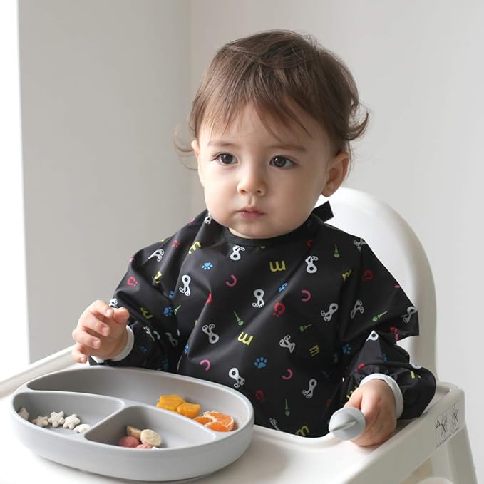 • Full coverage for messy eaters and little artists- Long sleeves with elastic cuffs protect from stains during meals or crafts.
