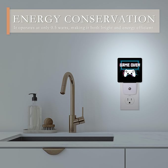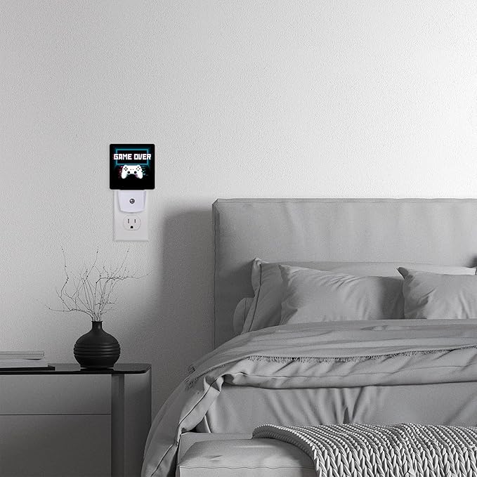 Gamer Game Controller Night Light,Game Over Night Lights Plug into Wall for Boys Girls Bedroom Decorative Half Round Nightlight Led Lamp 0.5W Sleep Friendly