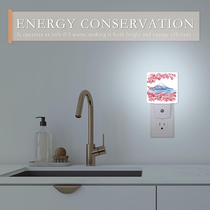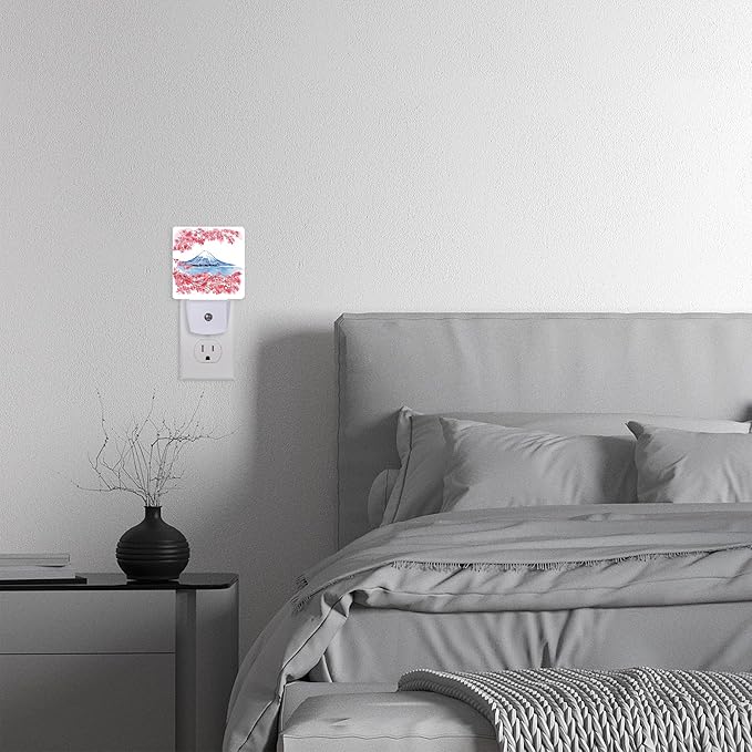 Cherry Blossoms Night Light,Mountain Fuji Plug-in Wall Led Night Lights Decor for Boys Girls Room,Dusk to Dawn Sensor Wall Lamp for Stairway/Hallway/Kitchen,0.5W