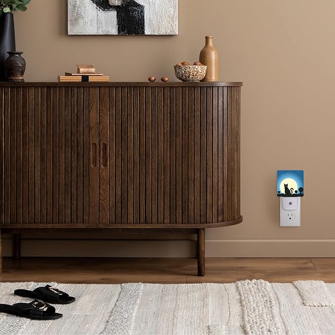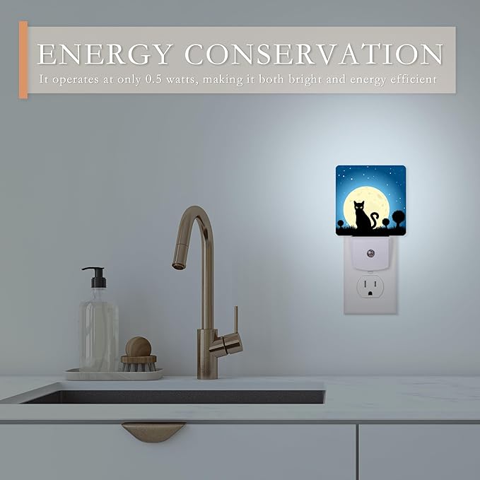 Halloween Night Lights Plug into Wall,Black Cat Moon Night Light Dusk to Dawn Sensor LED Lamp 0.5W for Boys/Girls/Women/Men Decorations Room 0.5W Sleep Friendly