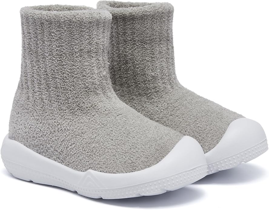 - Friendly Sock-like Upper: Sock-like stretchy textile construction upper hugs the foot to keep them comfortable and flexible when babies are on the move. Baby sock shoes made of soft fabric knit are also friendly to the skin, healthy, and very safe for infant babies.