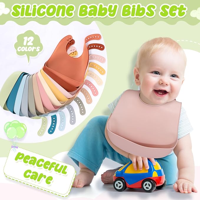 - Abundant Quantity: you will receive a pack of 24 silicone baby bibs in 12 colors, 2 of each color, an ample quantity to get you through several meal times before needing a wash; This makes them a choice for busy parents who need practical, easy to clean solutions for mealtimes