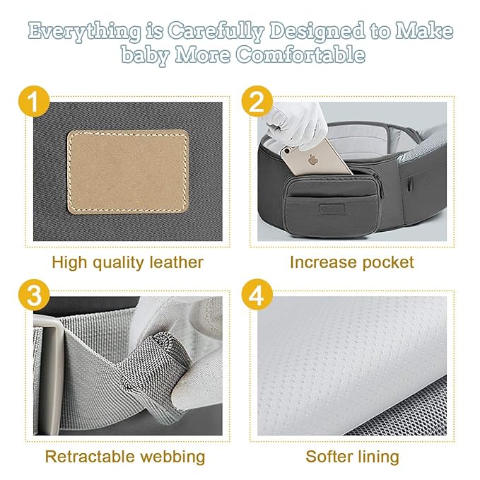 - Waist Stool: The comfortable baby carrier with hip seat gives you the perfect match!!!6-in-1 Baby Carrier with Hip Seat can provide different methods of use; safe and comfortable, worth having.
