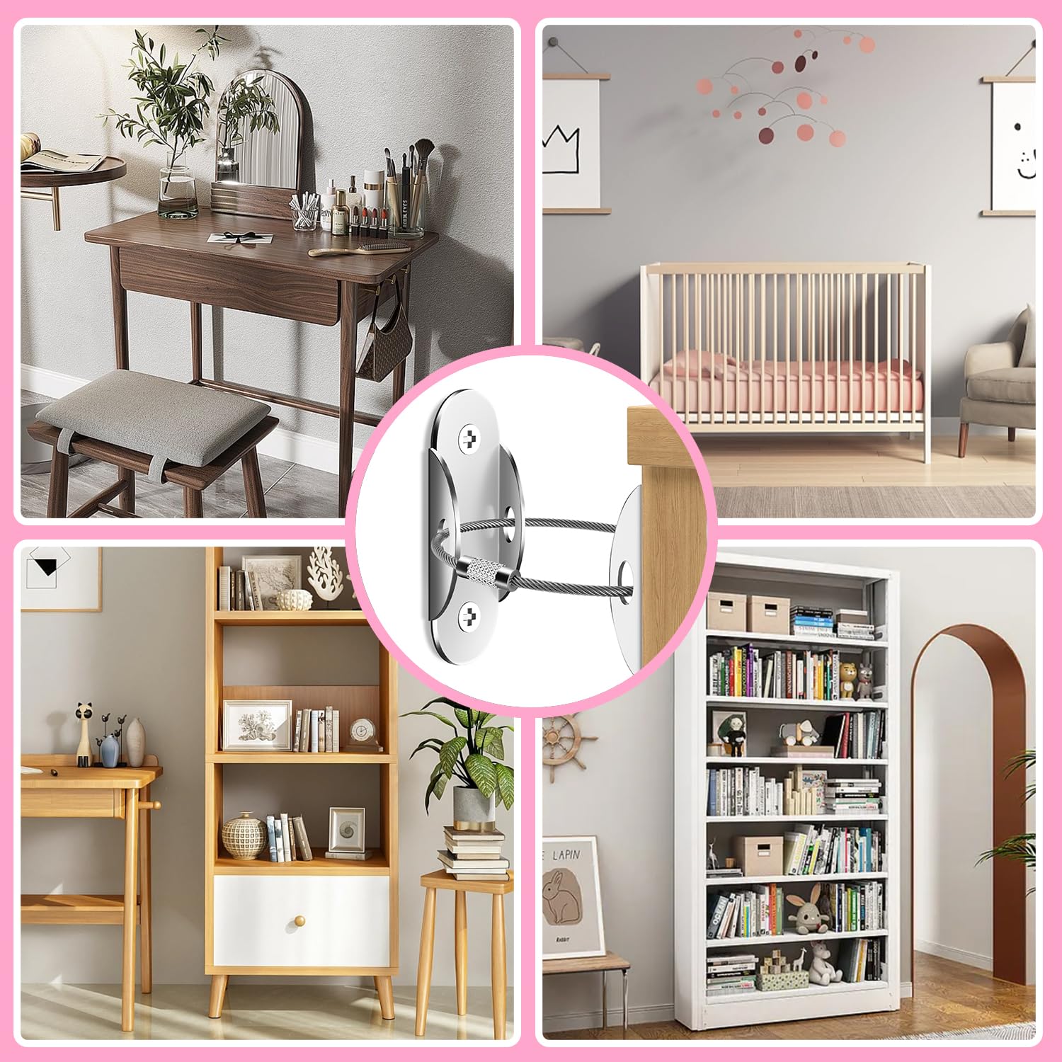 - Versatile Protection: Safeguard your space by anchoring furniture items such as bookcases, dressers, cabinets and wardrobes to the wall, effectively reducing incidents with curious toddlers. The detachable anti-tip anchor offers flexibility, allowing easy removal for cleaning or furniture repositioning.
