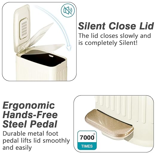 - š No-Hands-Free Pedal- No more touching trash cans with your hands! Our ergonomic pedal ensures durability and comfort. We put the Pedal test of these garbage bins through over 7000 times during the upgrade, and they passed with flying colors, boasting impressive non-slip, and comfortable performance.